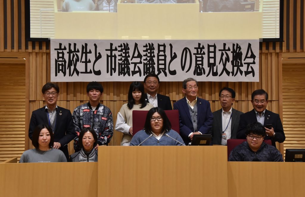 などなど、鋭い指摘がありました。私たちも議員として、若い世代と意見交換の場をもっと持つべきであること。そうすることで若者の目線が捉える斬新な政策展開ができるのではないか。同時に、若者が行政に関心を持ち続け、参画を促す可能性も広がる。低い投票率の解消や参加された高校生の中から、市議会議員や県議会議員へ挑戦するスイッチが入る可能性もあります。有意義な一時間半でした。