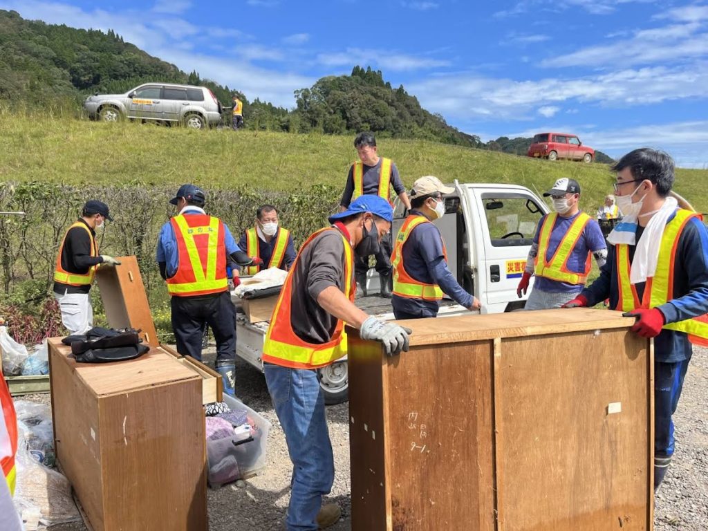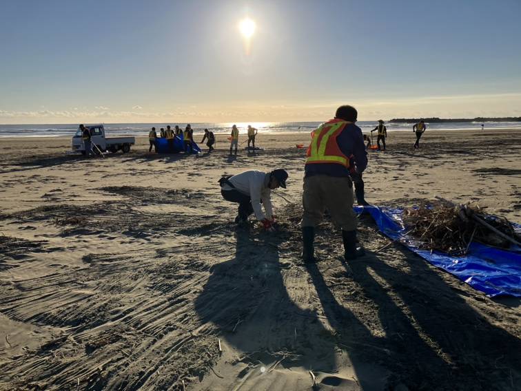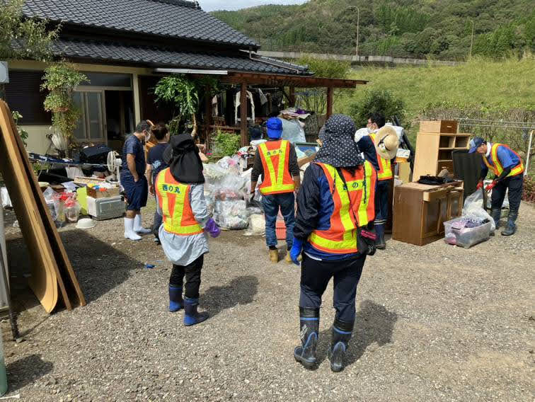 14号台風による内水氾濫で美々津町・余瀬地区20戸弱が床上浸水。被災後の9月27日に、㈱西の丸(本社:門川町:西谷栄一会長、西谷淳社長)のボランティア活動のメンバーおよそ30人が駆け付けてくれました。また、市内のサーフィン場「お倉が浜」の流木処理にも70名弱の皆さんが参加され、撤去作業も行っていただきました。
